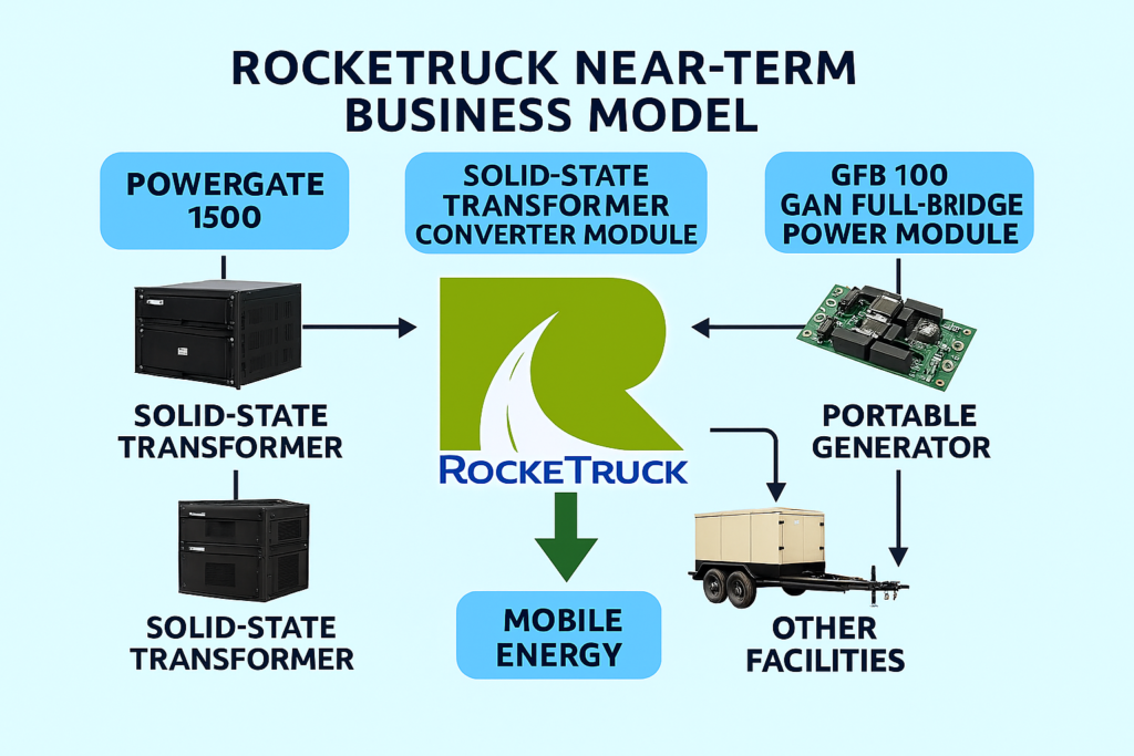 RockeTruck’s near-term business model is to manufacture and deliver solid-state transformers (SSTs), AC-to DC inverters, DC-to-DC converters, and fuel cell-battery generators – achieving this diverse product mix with a standardized set of GaN and SiC building blocks. Key target customers include data centers, electric vehicle (EV) charging facilities, and other facilities that can use these products to significantly reduce electricity consumption, simplify the devices using this power, and facilitate integration of distributed energy resources. RockeTruck has leveraged its capabilities to integrate such systems to acquire non-dilutive public funding to develop and demonstrate such products, and to engage major public utilities in these demonstrations. As a commercial market develops for large volume sales, RockeTruck will offer high-value components to other manufacturers seeking to mass-produce SSTs and these other products, while retaining the ability to sell customized SSTs and related products in lower volumes. As examples, RockeTruck may sell inverters using SiC power modules to other SST manufacturers, and may sell half-bridge power modules using GaN semiconductor chips to other inverter manufacturers. RockeTruck’s ultimate goal, if it is successful in moving up the value chain in this manner, is to mass-produce GaN bare dies, which can be used by other manufacturers of power modules.